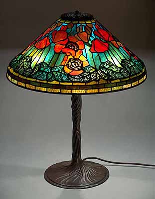 20" Poppy Tiffany Lamp shade # 1531 & Bronze lamp base Twisted Vine # 443