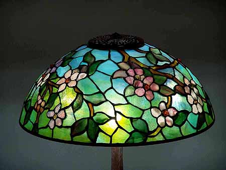 16" APPLE BLOSSOM #1455 Tiffany Lamp shade & SMALL STICK Bronze casted Tiffany Lamp base #533